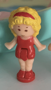 Nom : Polly Genre : féminin Type de cheveux : bouclé Couleur de cheveux : blonds Longueur : courts Coiffure : – Vêtements : maillot de bain rouge Chaussures : rouge Base : rouge Accessoire(s) : serre-tête rose rouge Numéro : |